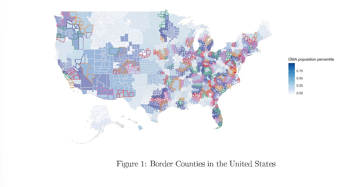 Where one market leaves off and another begins is somewhat arbitrary, and so you can compare the counties at the border. The argument is that, after controlling for the average tendencies of the area and for the average tendencies of that time period, changes in ad buys can give us the true effect. This leaves us with lots and lots of counties which can support the effect.