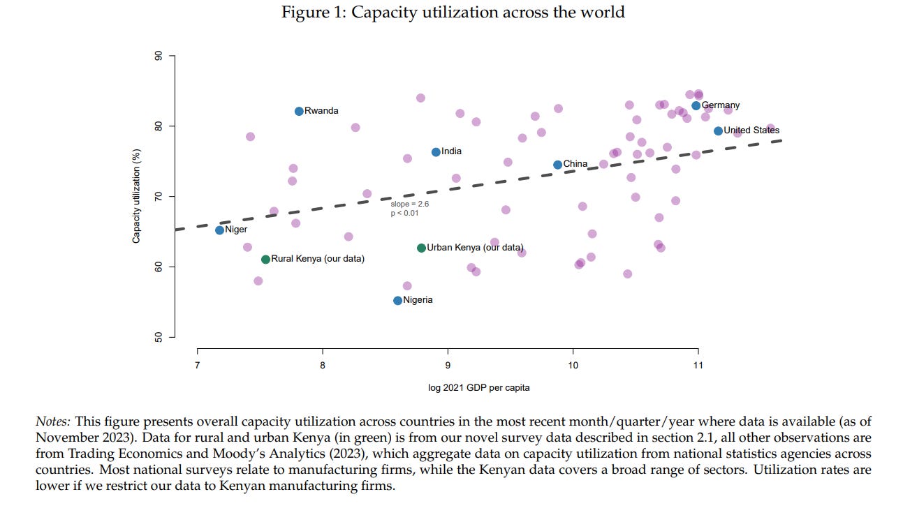 And to be clear, this need not be just machines. A restaurant is most productive if it is serving people all of the time, rather than waiting around idly for customers. The GiveDirectly experiment people find that the most “slack” in production can be found in microenterprises with a single owner-employee, and in thinner markets in the country. Moving to the city, as discussed in Monday’s article, is a way of having customers around.